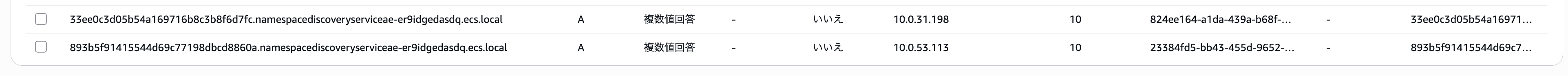 ECSのタスクは起動のたびにIPアドレスが変わったりしますが、Cloud Map を使うことで、backend.ecs.local みたいな名前でECSのタスクのIPアドレスを引くことが可能になります。