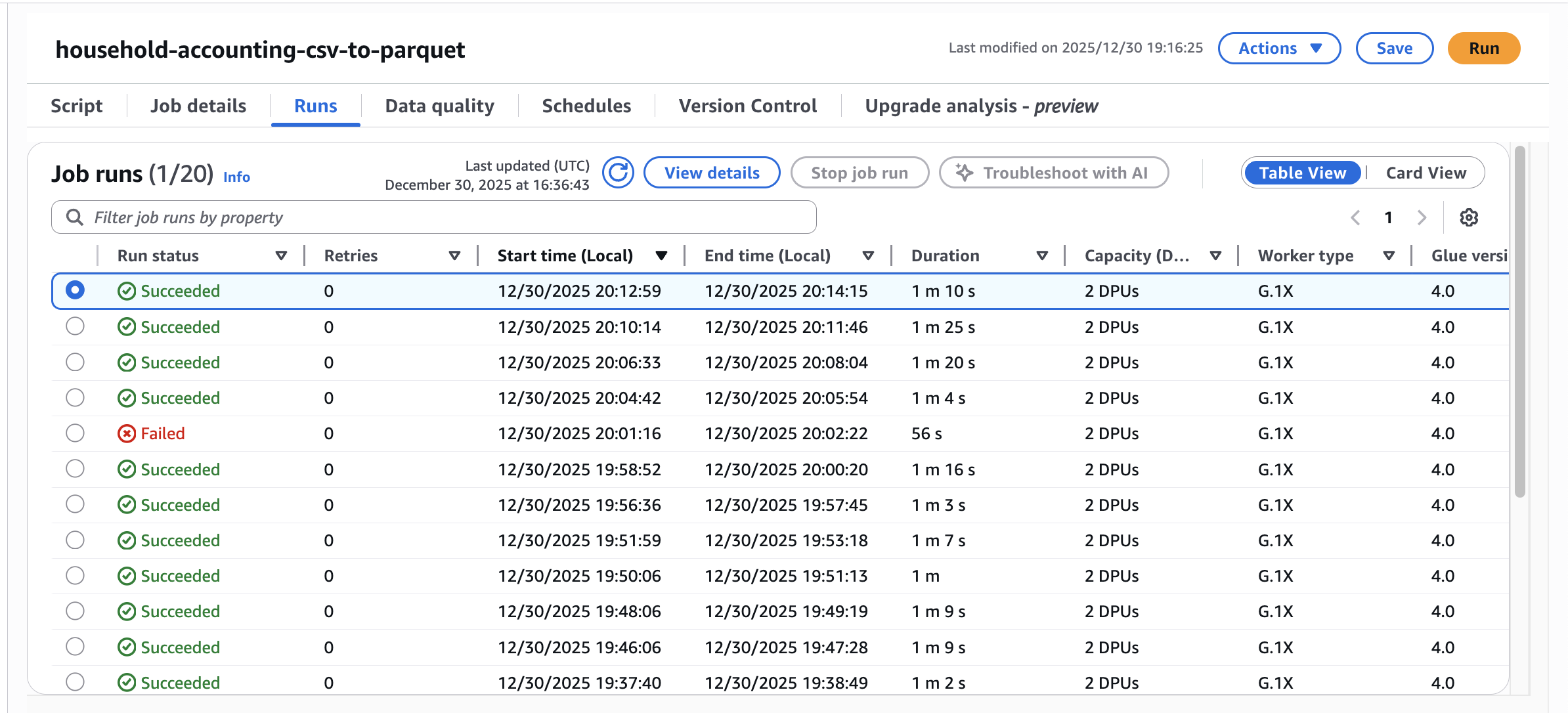 Glueは勉強になったものの、今回の規模だと普通にLambdaで変換してもよかった気がします。