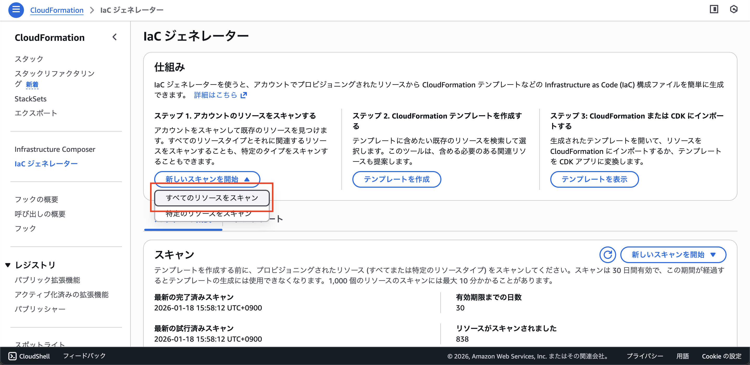 CloudFormation のIaCジェネレーターのスキャンを実施