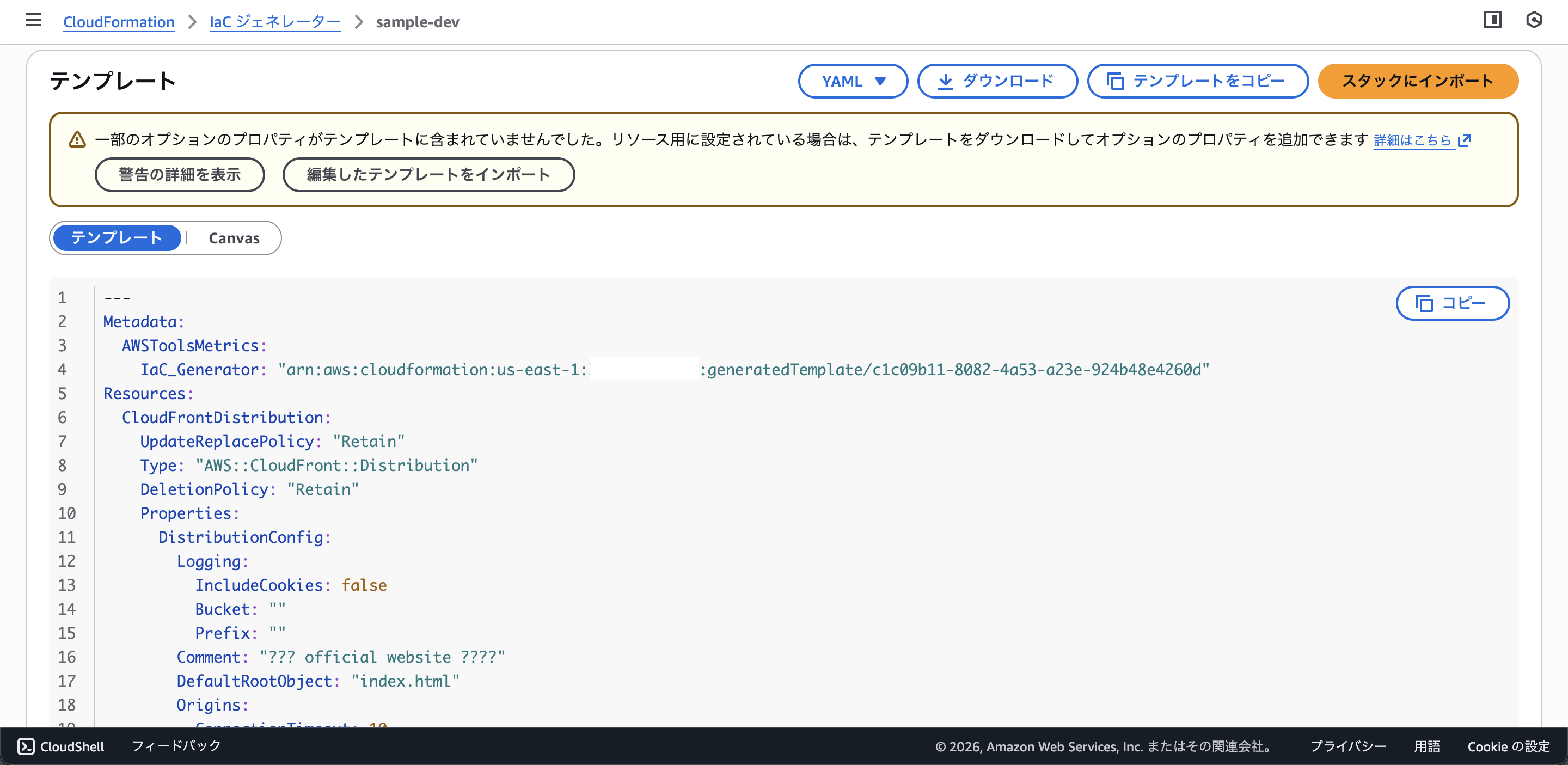 CloudFormationのテンプレートが表示されていますね