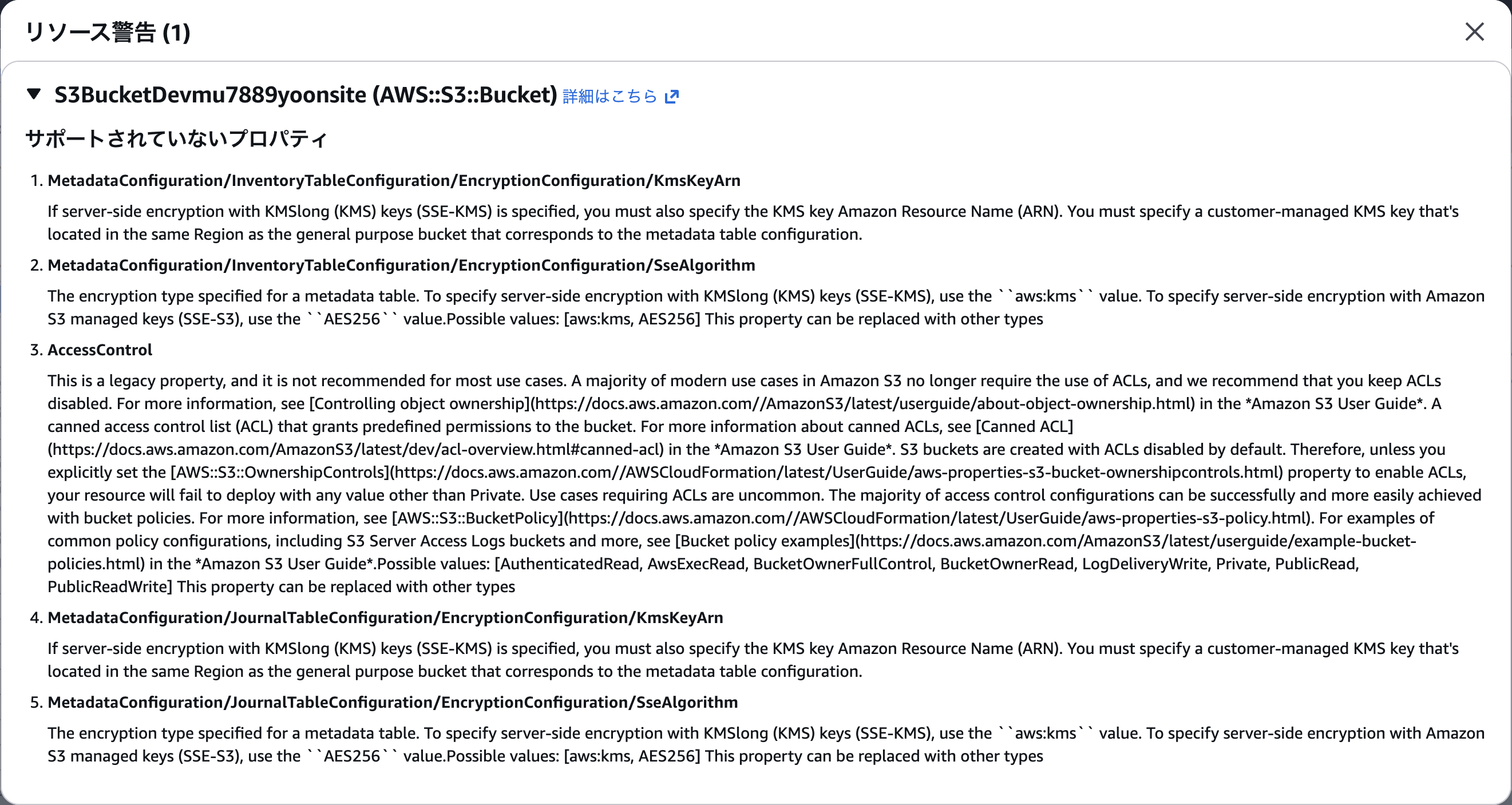 L1コンストラクトの状態でAWS CDKの管理下に置くことができました。